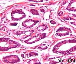 Вместе с тем, любое злокачественное новообразование помимо клеточного атипизма обязательно проявляет признаки и тканевого атипизма. Железы различной формы и величины, формирующие опухоль, часто имеют уродливые очертания и не содержат выводных протоков. Выделяют множество вариантов аденокарциномы: ацинарную, трабекулярную, светлоклеточную, темноклеточную, слизистая и т.д., и т.д. Следует уберечь исследователей от попытки рассматривать эти варианты, как отдельные гистологические формы опухоли, так как по сути они представляют собой лишь характерные индивидуальные особенности роста аденокарциномы. Поэтому, данные показатели можно и нужно расценивать, как дополнительные по отношению к характеристике гистологической формы опухоли. Гистологическая же форма новообразования, содержит в себе синтетическую информацию, сочетающую, как мы уже сказали выше, гистогенетический тип и степени дифференцировки - сочетание характеристик клеточного и тканевого атипизма.